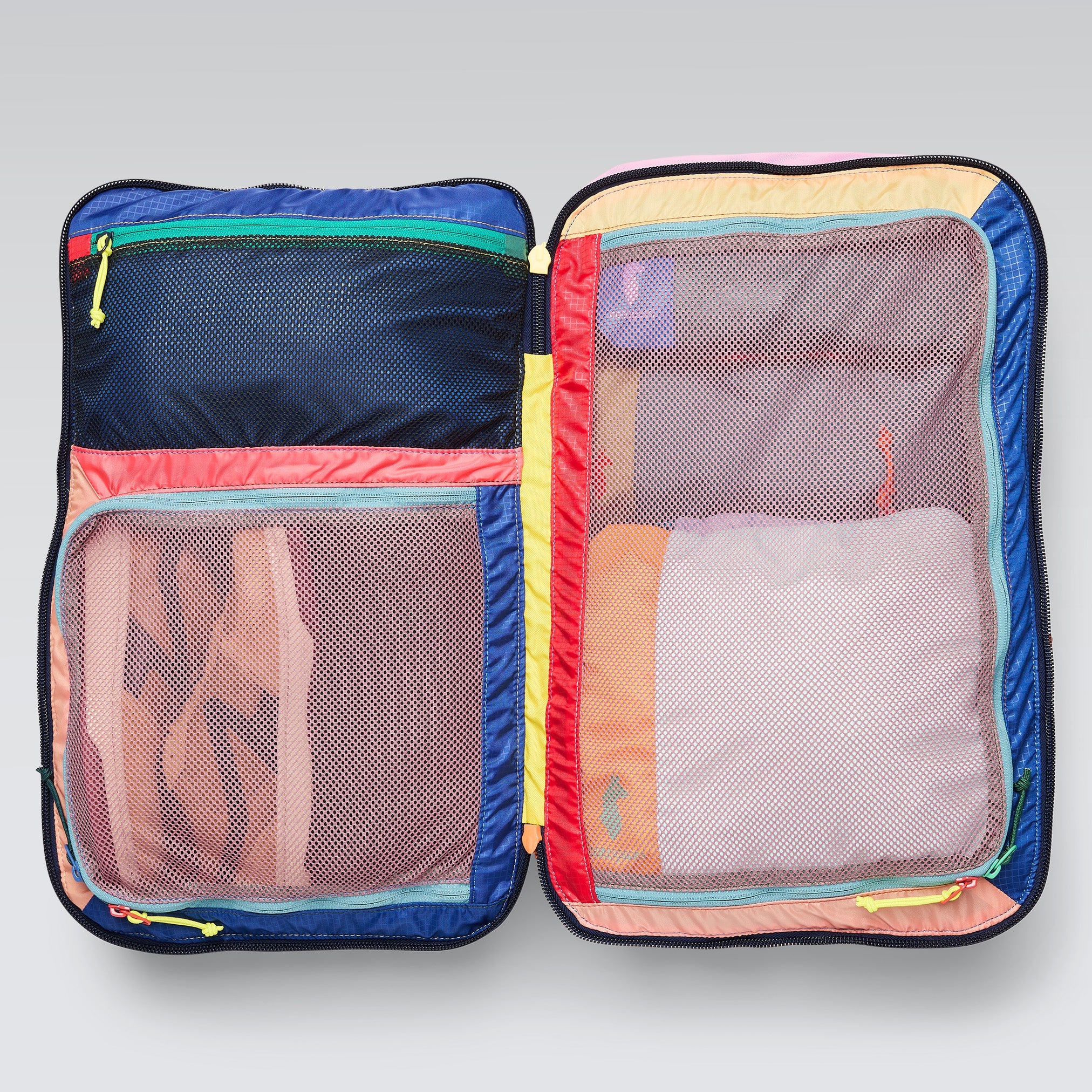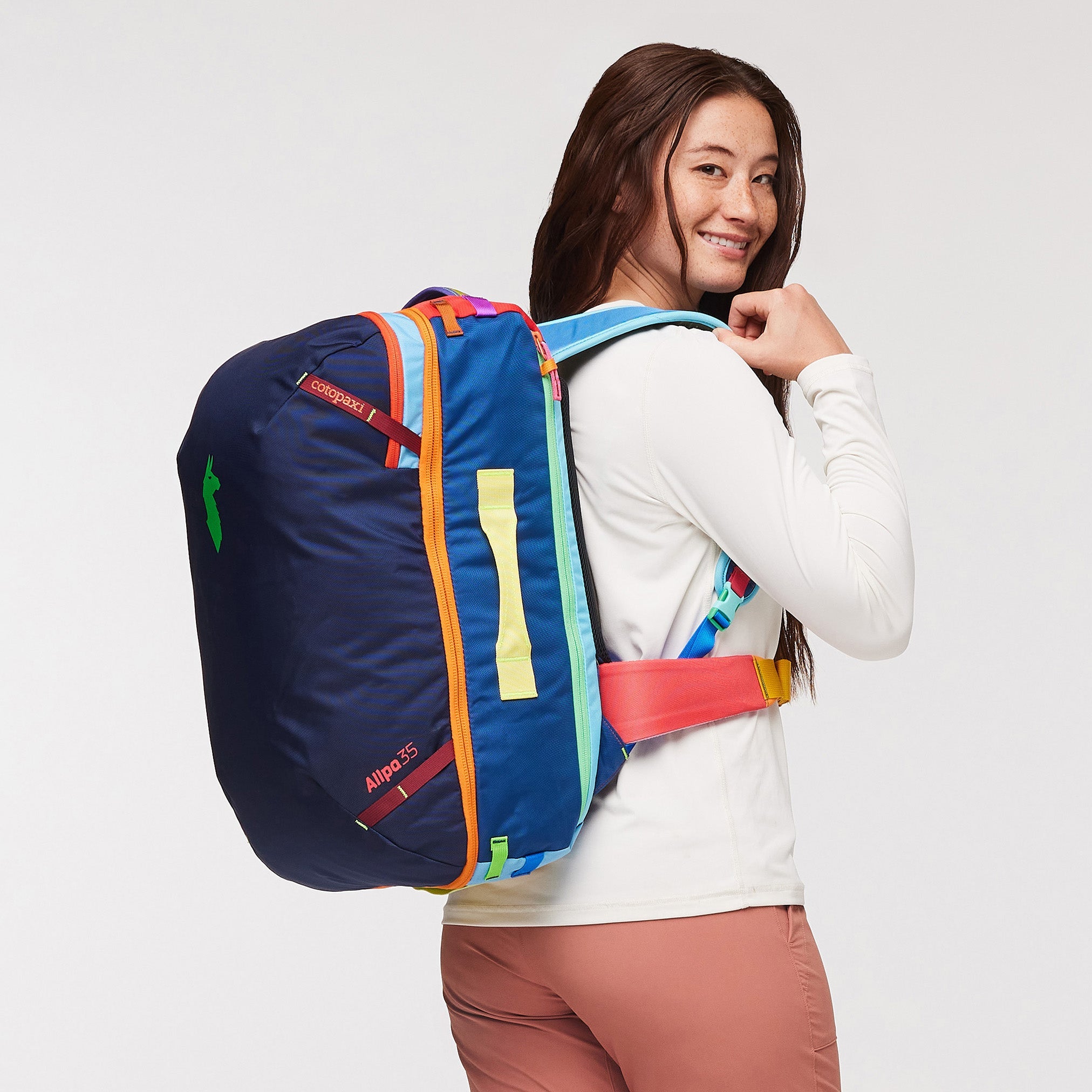 La Cotopaxi Allpa 35L, una versión más pequeña y manejable de la mochila de viaje Allpa 42L, facilita los viajes. La Allpa 35L incorpora una correa de transporte acolchada y de perfil bajo para que te sientas cómodo incluso a plena carga. Las correas moldeadas para los hombros, el panel dorsal flexible de malla de aire, la correa ajustable para el pecho y el cinturón ligero de nailon para la cadera proporcionan un confort adicional. Los compartimentos acolchados para el portátil y la tableta son accesibles a través de una cremallera en el lateral exterior derecho, y un compartimento dividido en la parte superior está diseñado para los pasaportes y otros objetos pequeños. Las correas para los hombros y las caderas están alojadas en un panel trasero ranurado para que no queden atrapadas en los compartimentos superiores ni en el cinturón de equipaje. Cuatro asas reforzadas ofrecen múltiples opciones de transporte cuando las correas de los hombros están bajadas, y dos puntos de sujeción adicionales en la parte superior de la mochila permiten llevar más equipaje. Cada accesorio de la colección Del Dia es único. Todos los materiales sobran de otras series de producción, que podemos salvar del vertedero. Los empleados de la fábrica pueden decidir por sí mismos cómo combinar los colores; el único requisito es que no puede haber dos colores completamente idénticos.