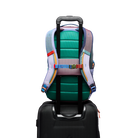 La mochila Allpa 18L Daypack te permite llevar tus objetos esenciales diarios con estilo, gracias a sus fundas para ordenador portátil/tableta, bolsillos de malla para botellas de agua y una correa para fijarla al equipaje. Fabricada con tejido resistente para soportar los desplazamientos más duros. Cada accesorio de la colección Del Dia es único. Todos los materiales sobran de otras series de producción, que podemos salvar del vertedero. Los empleados de la fábrica pueden decidir por sí mismos cómo combinar los colores; el único requisito es que no puede haber dos colores completamente idénticos.